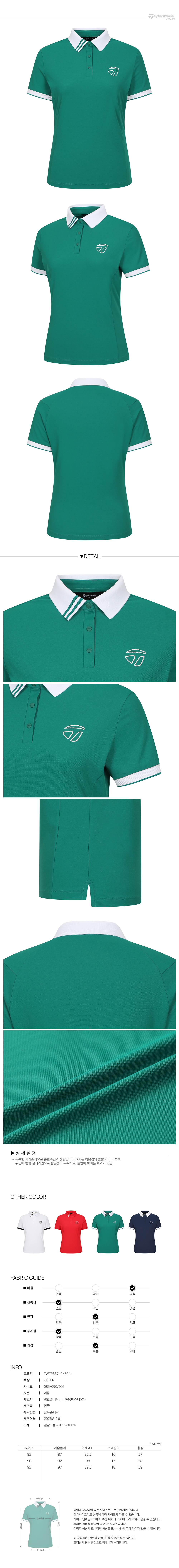 [테일러메이드] 26SS 여성 배색 포인트 카라 반팔 티셔츠 TWTP66742-804