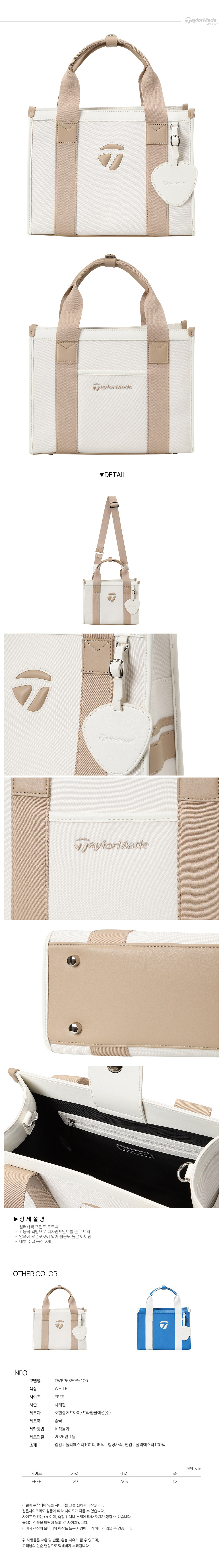 [테일러메이드] 26SS 여성 컬러 배색 포인트 토트백 TWBP6S693-100