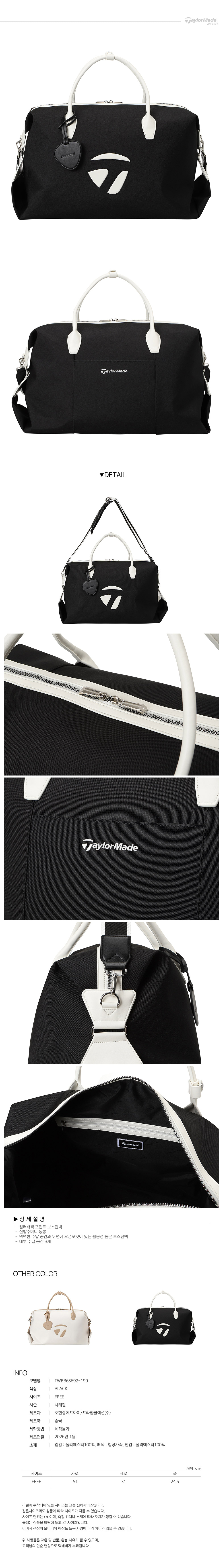 [테일러메이드] 26SS 여성 컬러 배색 포인트 보스턴백 TWBB6S692-199