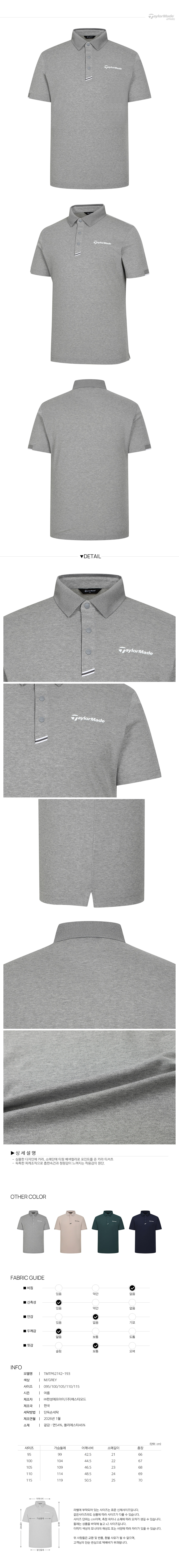 [테일러메이드] 26SS 남성 배색 포인트 카라 반팔 티셔츠 TMTP62742-193
