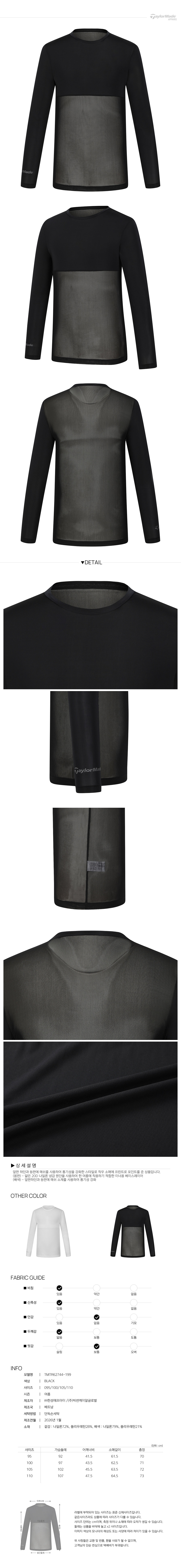 [테일러메이드] 26SS 남성 베이직 메쉬 라운드 베이스레이어 티셔츠 TMTR62744-199