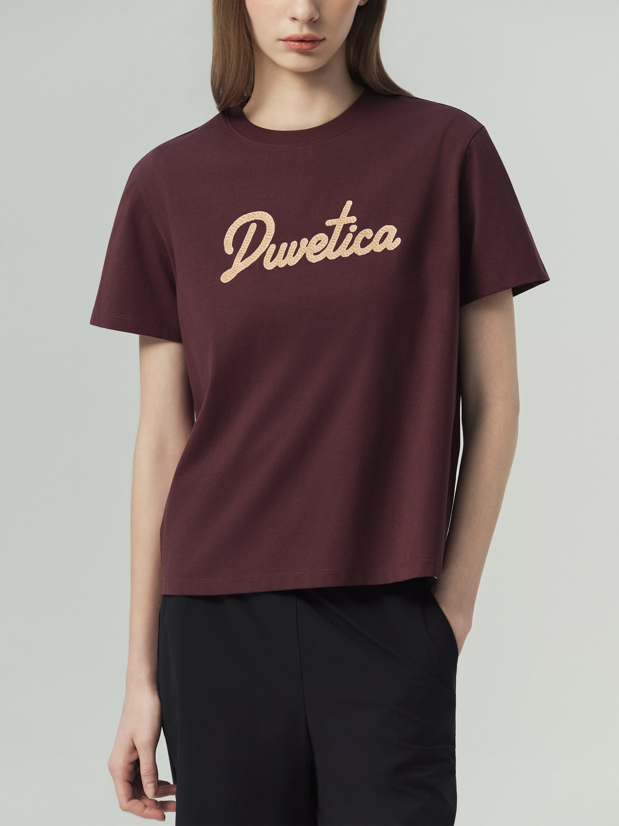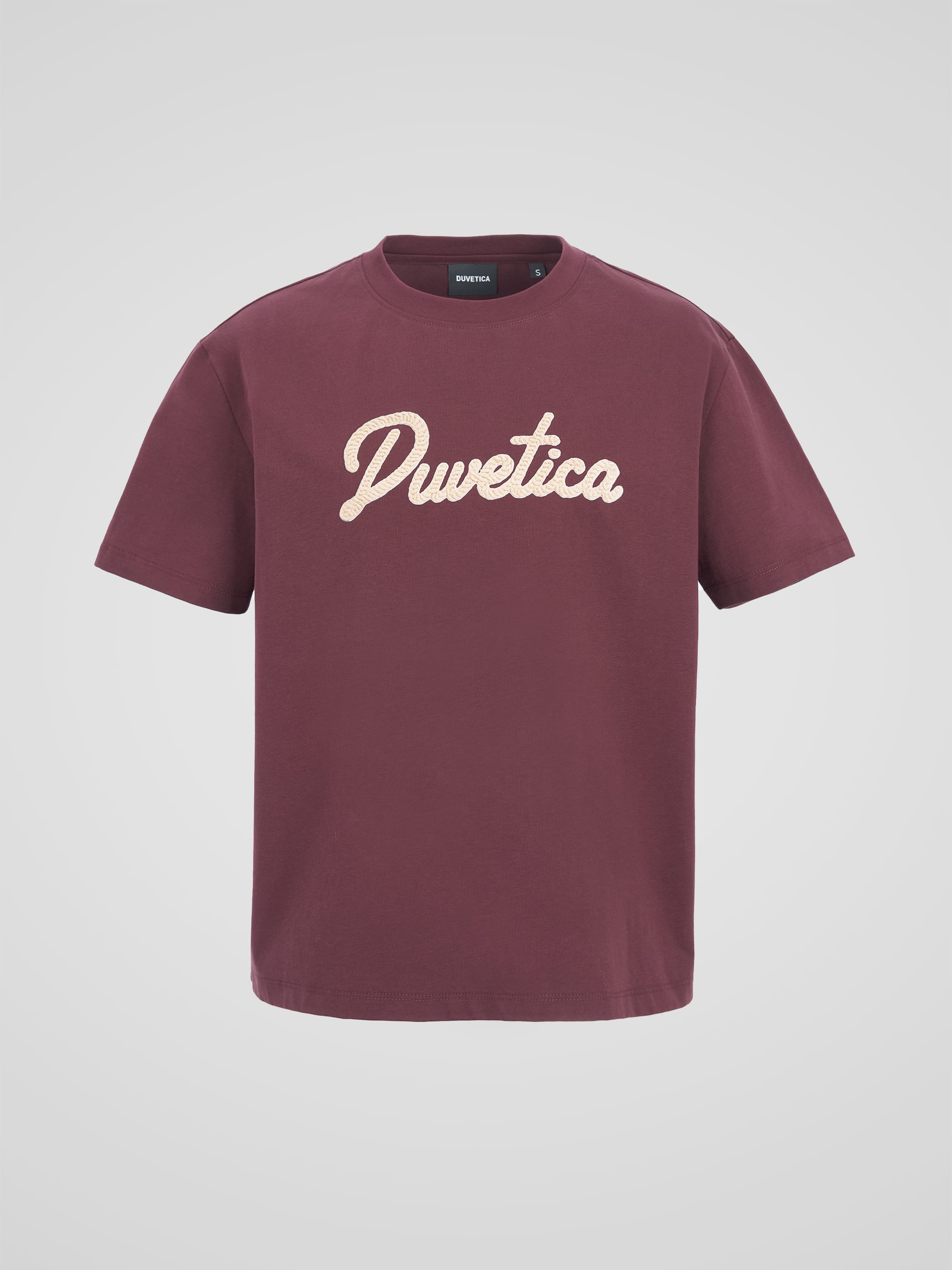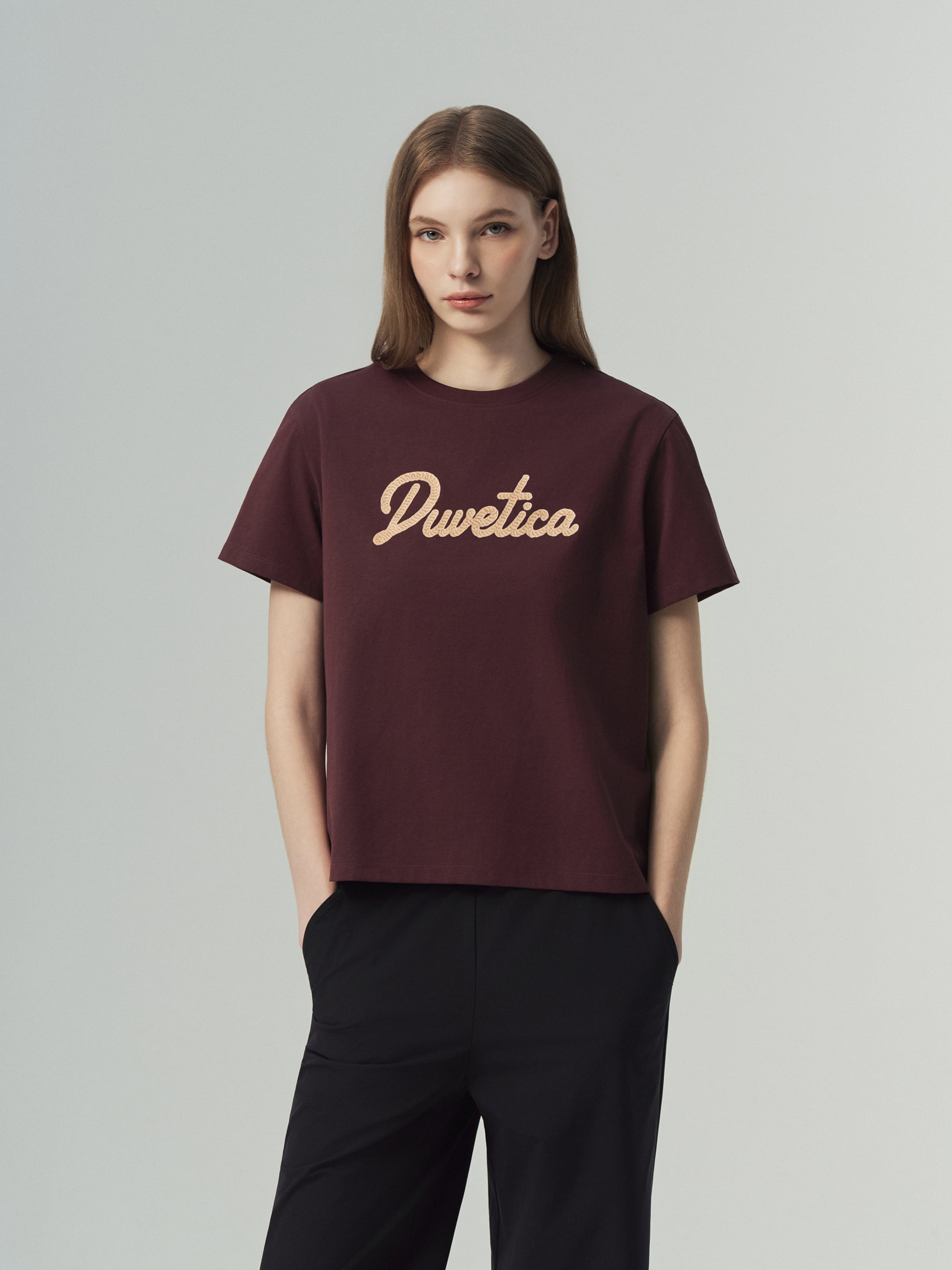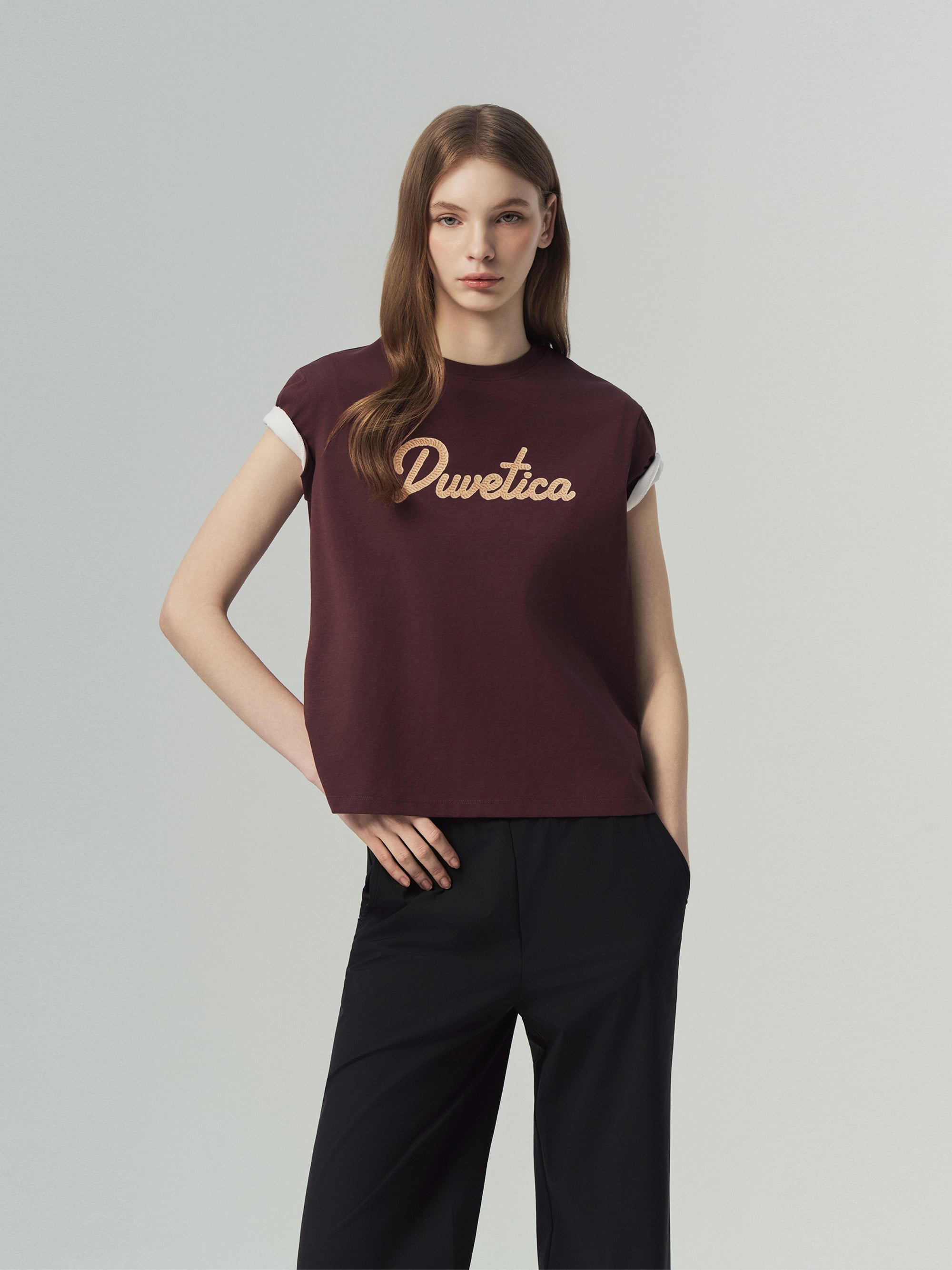 - 니트 텍스쳐의 듀베티카 흘림체 로고로 여름 데일리룩 포인트 연출에 용이