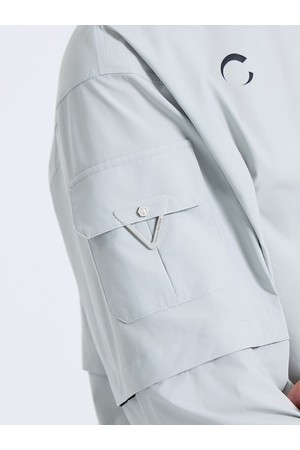 남성 2WAY 소매 탈부착 빅프린트 라운드 우븐탑 라이트그레이
