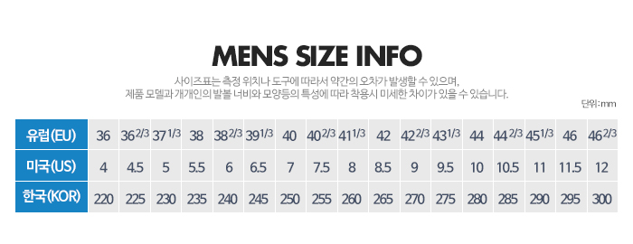 | 치수 | 사이즈:250/255/260/265/270/275/280/285 |