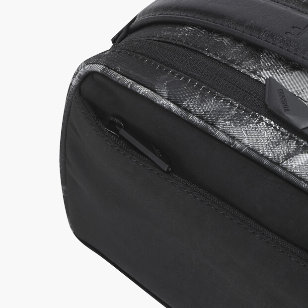 리플렉티브 원단을 사용해 빛에 따라 변하는 은은한 광택과 고급스러운 무드를 선사하는 ACMT 파우치백은