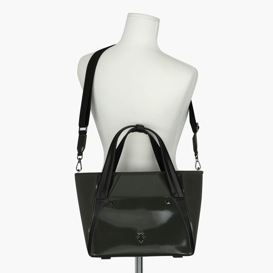 글로시한 PU소재의 믹스와 정교한 절개 디테일로 고급스러운 비주얼을 완성한 ACMT 시리즈 여성 미니백입니다.