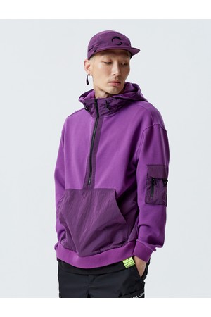 남성 우븐 저지 골프 아노락 후드 퍼플
