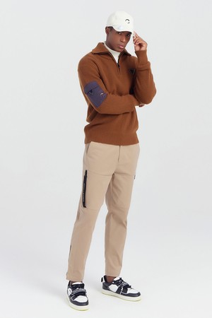 남성 밑단 지퍼 카고 골프 팬츠 라이트베이지