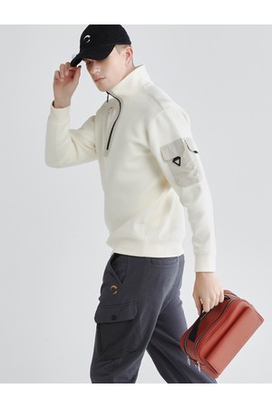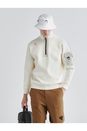 남성 우븐 포켓 아노락 골프 티셔츠 아이보리