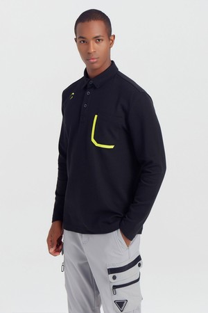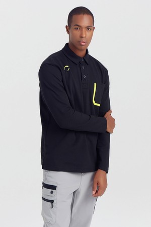 남성 포켓 피케 폴로 골프 티셔츠 블랙