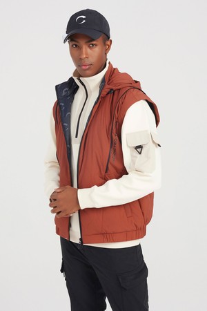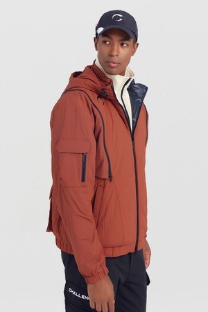 남성 투웨이 소매 탈부착 퀼팅 골프 점퍼 오렌지