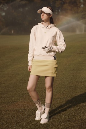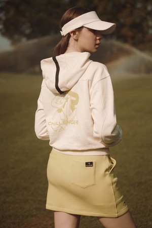 여성 백 프린트 저지 골프 후디티셔츠 아이보리