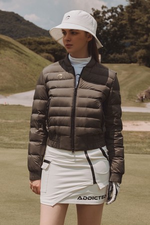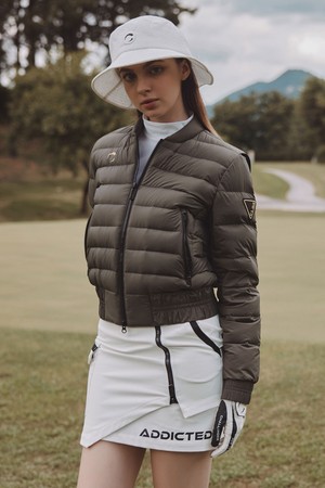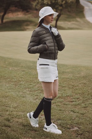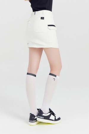 여성 사선 지퍼 언발란스 골프 스커트 오프화이트