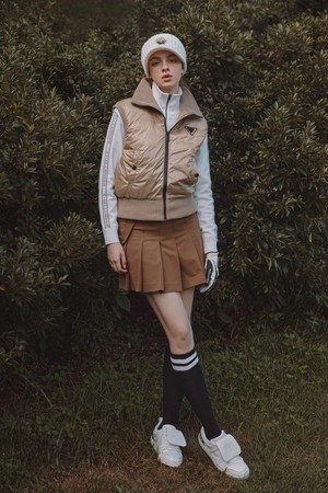 여성 글로시 구스다운 골프 베스트 골드