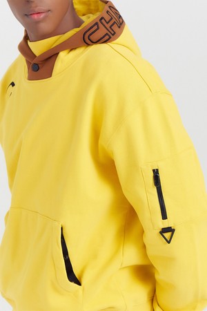 남성 빅로고 저지 후드 골프 티셔츠 옐로우