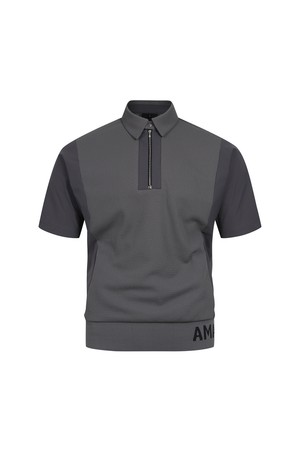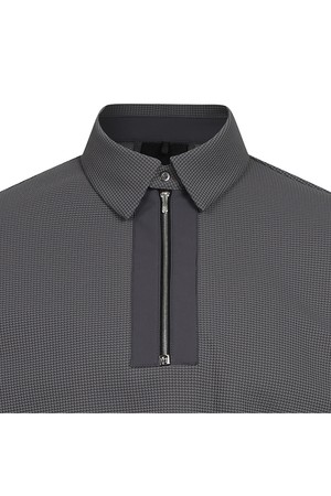 - 테크니컬 와플 메쉬 조직 소재의 짚업 카라넥 티셔츠