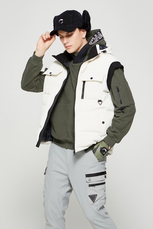 남성 소매 탈부착 헝가리 구스다운 골프 점퍼 아이보리