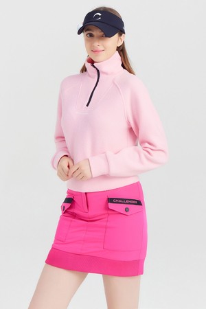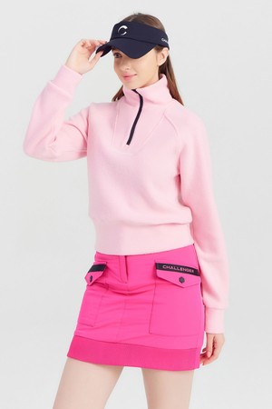 여성 빅 로고 반집업 골프 티셔츠 라이트핑크