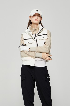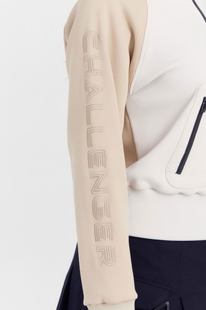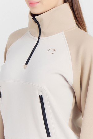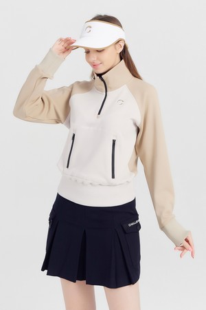 여성 캥거루 포켓 기모 반집업 골프 티셔츠 라이트베이지