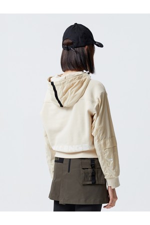 여성 우븐 포켓 크롭 골프 후드티셔츠 베이지