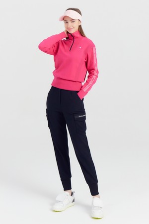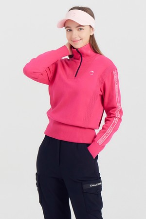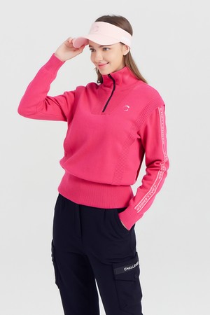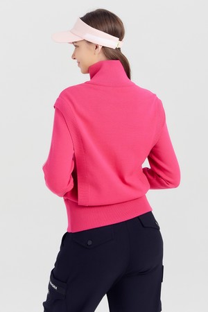 여성 방풍안감 반집업 골프 스웨터 핫핑크