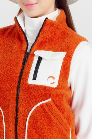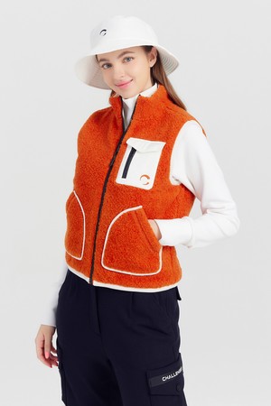 여성 CLGR 리버서블 플리스 패딩 골프 베스트 오렌지
