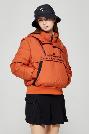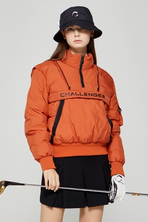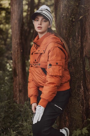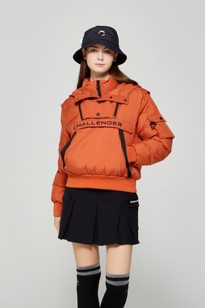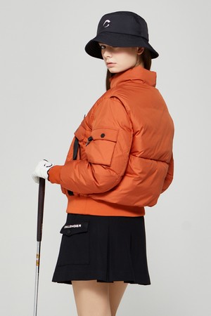 여성 후드 탈부착 헝가리 구스다운 골프 점퍼 오렌지