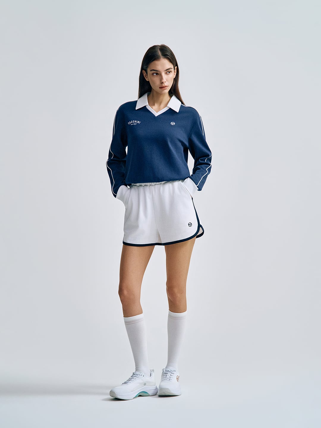 - - 깔끔한 쇼츠 디자인에 배색 파이핑 디테일로 스포티한 포인트를 더한 아이템