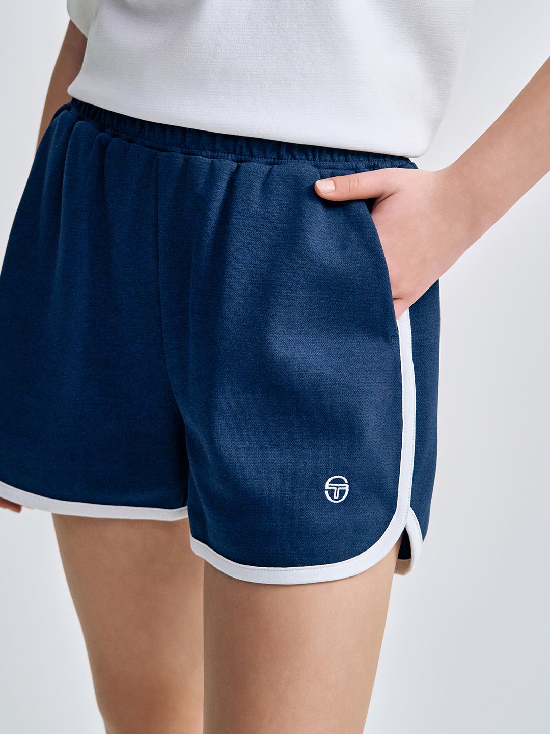 - -- 깔끔한 쇼츠 디자인에 배색 파이핑 디테일로 스포티한 포인트를 더한 아이템