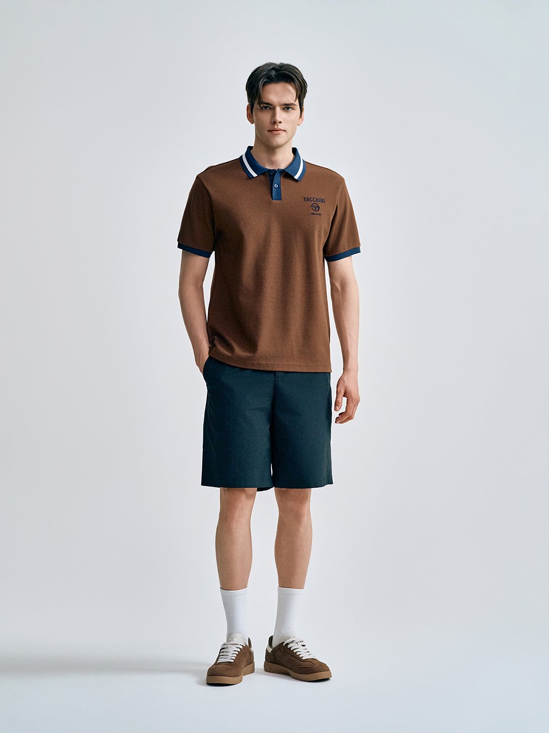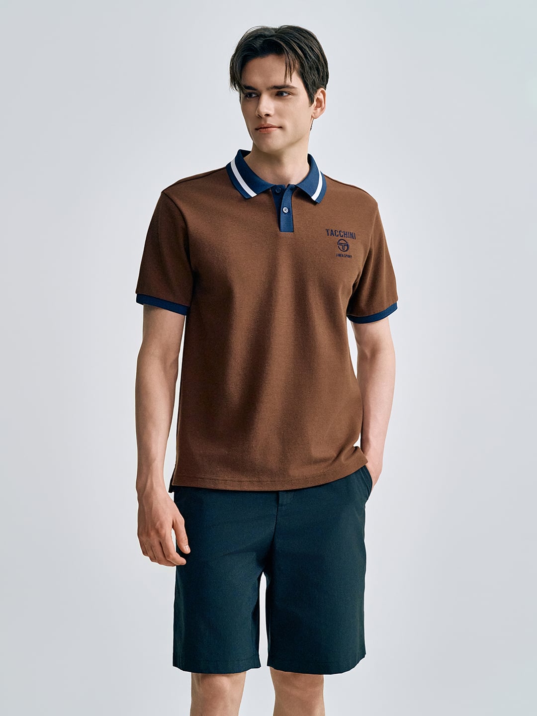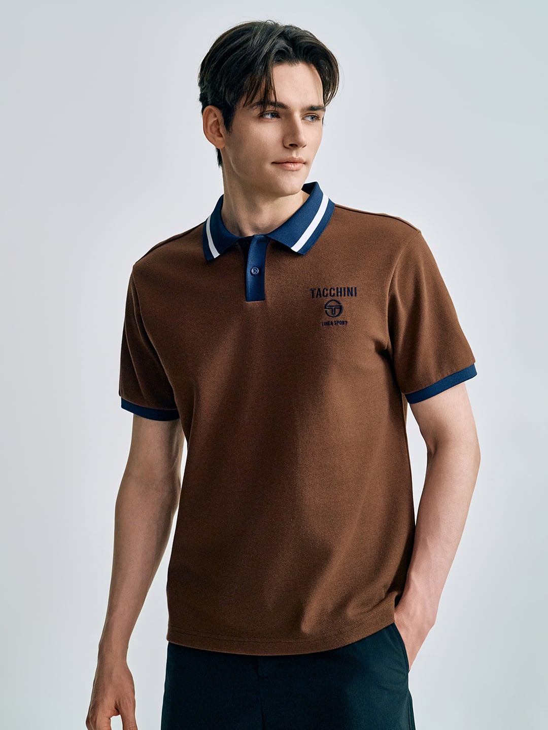 - - 배색 카라를 적용하여 클래식한 무드 연출하는 오픈 카라 폴로