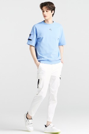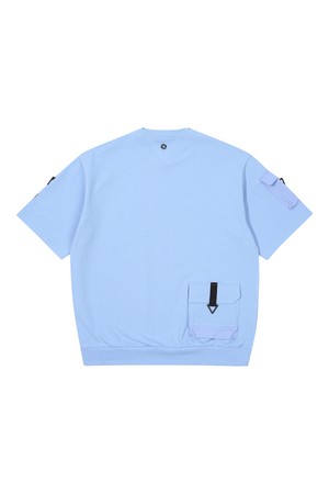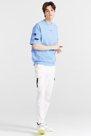 PQ조직 소매포켓 라운드넥 남성 맨투맨 골프 반팔티셔츠 스카이블루