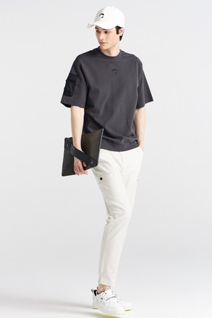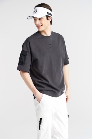 PQ조직 소매포켓 라운드넥 남성 맨투맨 골프 반팔티셔츠 차콜