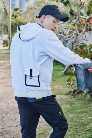 소매포켓 저지우븐 후드 남성 긴팔 골프티셔츠 화이트
