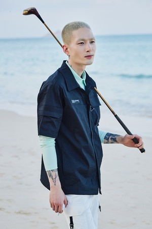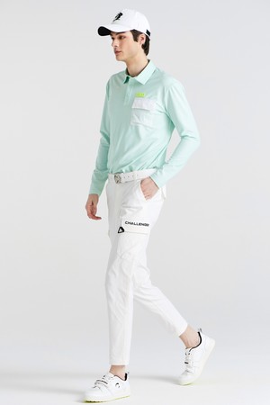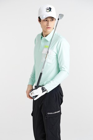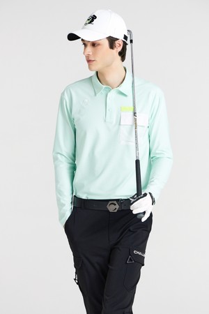 기능성소재 우븐포켓 레터링 카라넥 남성 긴팔 골프티셔츠 라이트그린