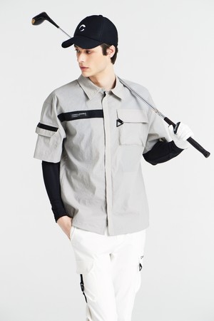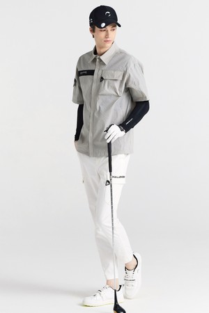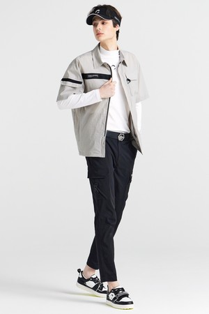 스트레치우븐 셔츠형 로고배색 남성 골프 반팔 바람막이 라이트그레이