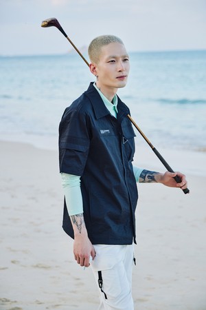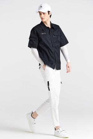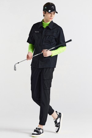 스트레치우븐 셔츠형 로고배색 남성 골프 반팔 바람막이 블랙