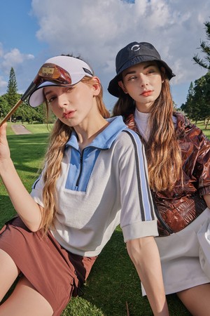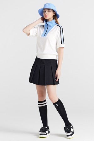 테리원단 변형하이넥 집업 여성 골프 반팔티셔츠 화이트