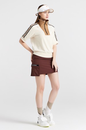 양쪽포켓 나일론스판 로고레터링 여성 골프 큐롯스커트 브라운