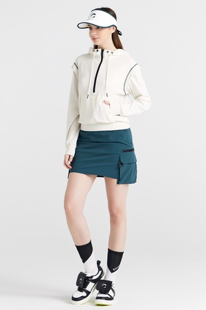 양쪽포켓 나일론스판 로고레터링 여성 골프 큐롯스커트 블루그린