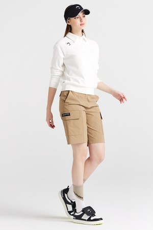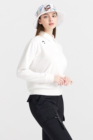 면PQ 우븐배색 카라넥 블루종 여성 긴팔 골프티셔츠 화이트