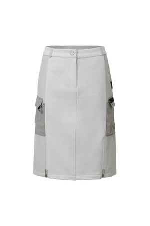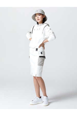 여성 사이드 지퍼 미디움 저지 골프 스커트 오프화이트