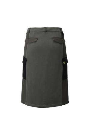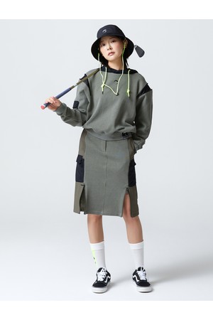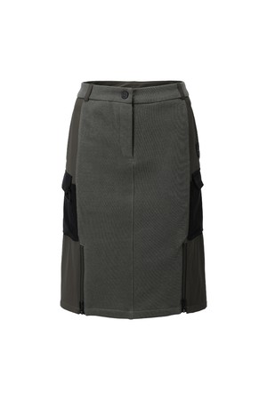 여성 사이드 지퍼 미디움 저지 골프 스커트 카키