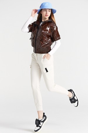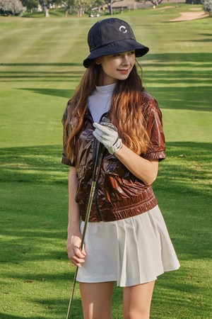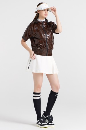 글로시원단 후드변형 블루종 여성 골프 반팔 바람막이 브라운