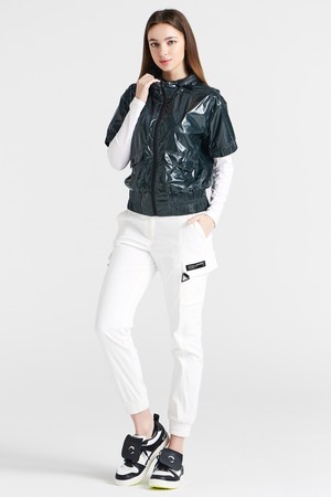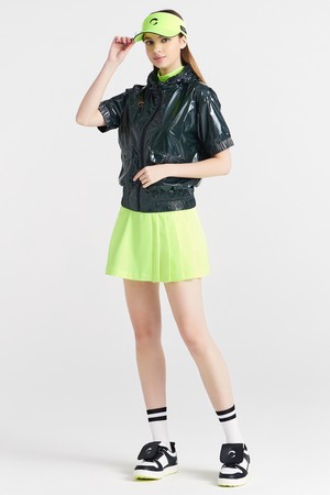 글로시원단 후드변형 블루종 여성 골프 반팔 바람막이 블루그린