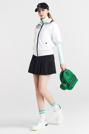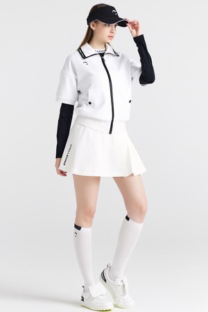 저지스판 앞포켓 풀집업 숏기장 여성 골프 반팔티셔츠 화이트