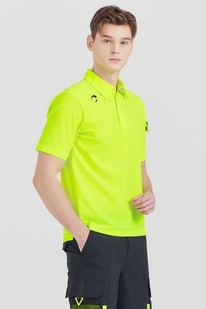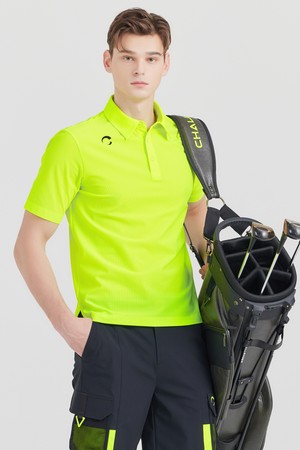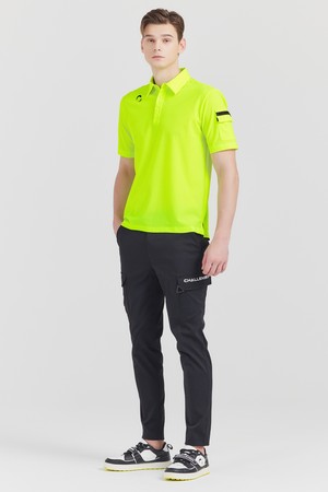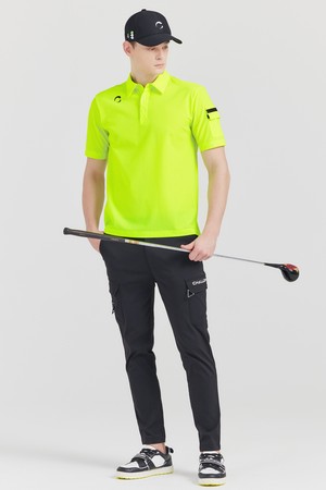 냉감 PQ조직 소매포켓 카라넥 남성 골프 반팔티셔츠 네온그린