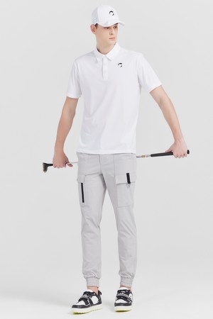 유럽 싱글저지 냉감 CLGR 남성 카라넥 골프 반팔티셔츠 화이트