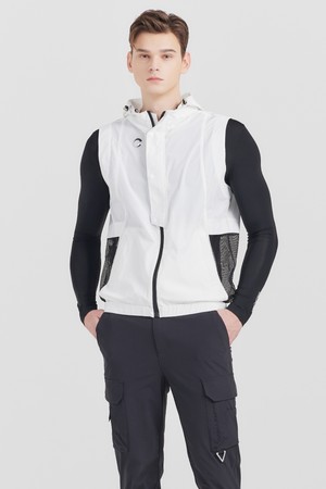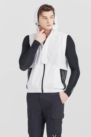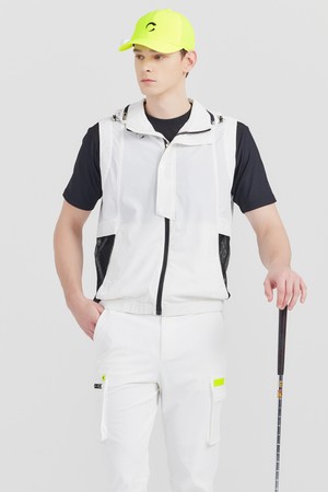 매쉬패치 후드 경량 남성 풀집업 골프조끼 화이트