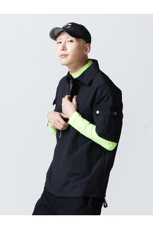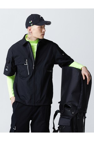 남성 풀집업 반팔 골프 바람막이 블랙