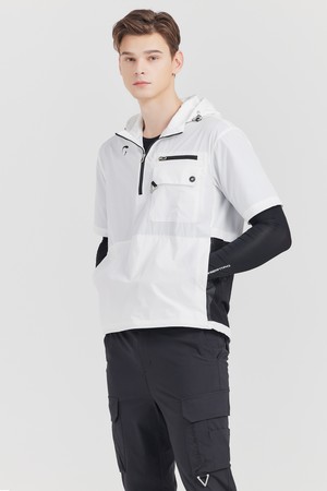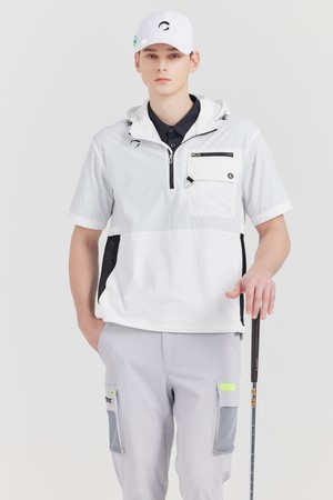 매쉬 패치 아노락 후드 경량 남성 반팔 골프 바람막이 화이트